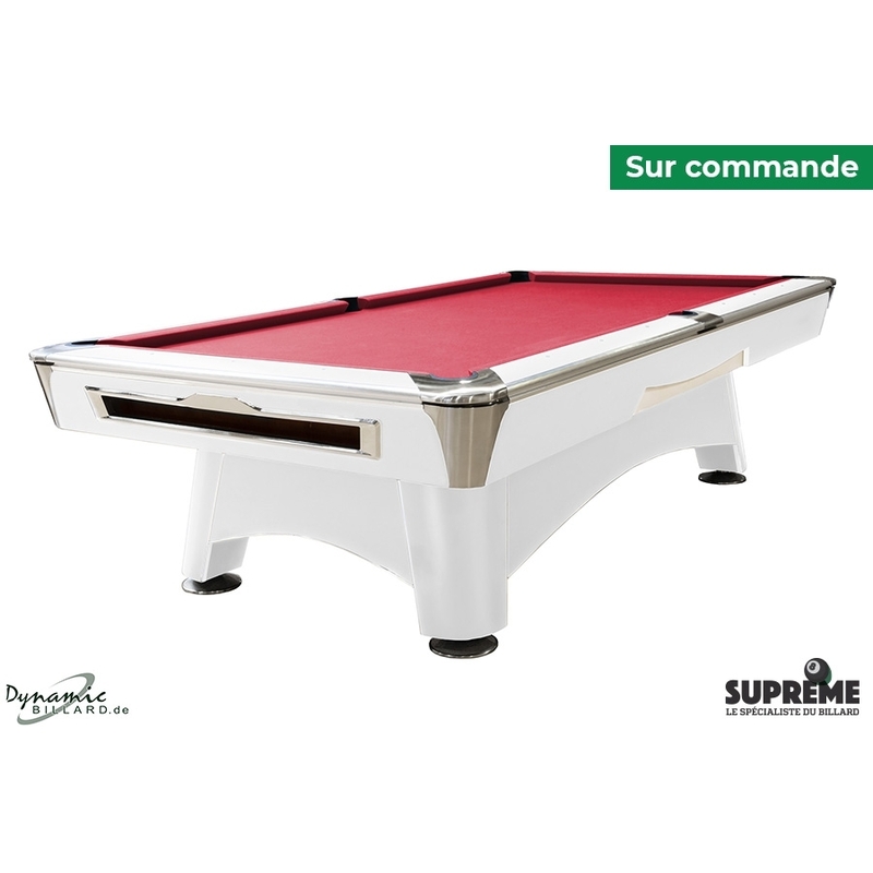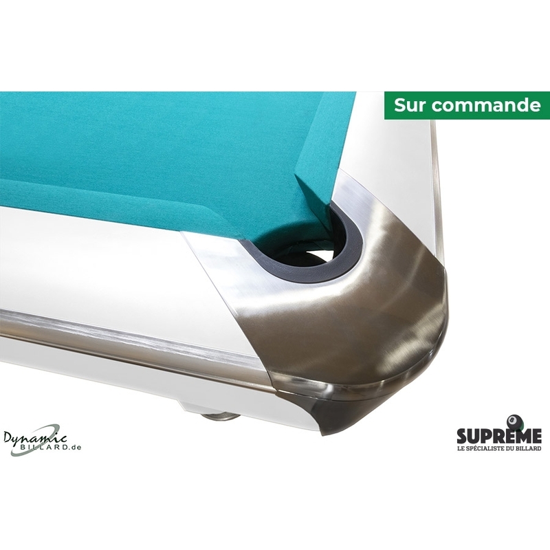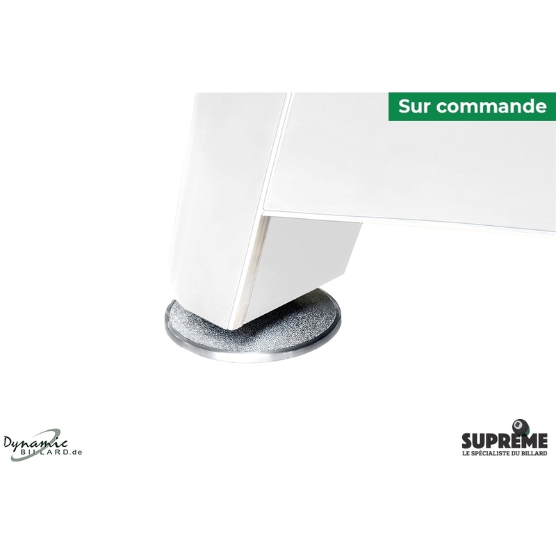 Les coins et les pieds de la table ont été conçus pour allier esthétique et solidité. La teinte blanche uniforme met en valeur les lignes et les volumes du meuble. Les pieds massifs assurent une assise ferme au sol, garantissant une stabilité optimale lors de chaque partie. Les poches intégrées capturent les billes en douceur tout en restant discrètes dans le design global de la table.