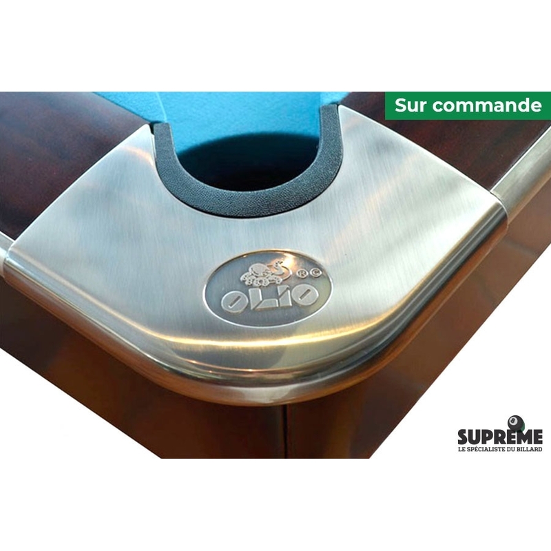 Les coins et les pieds de la table ont été conçus pour allier esthétique et solidité. Les lignes épurées se marient avec la teinte marron pour créer une cohérence visuelle élégante. Les pieds robustes assurent une stabilité optimale, tandis que les poches intégrées capturent les billes en douceur sans altérer l’harmonie du design global.