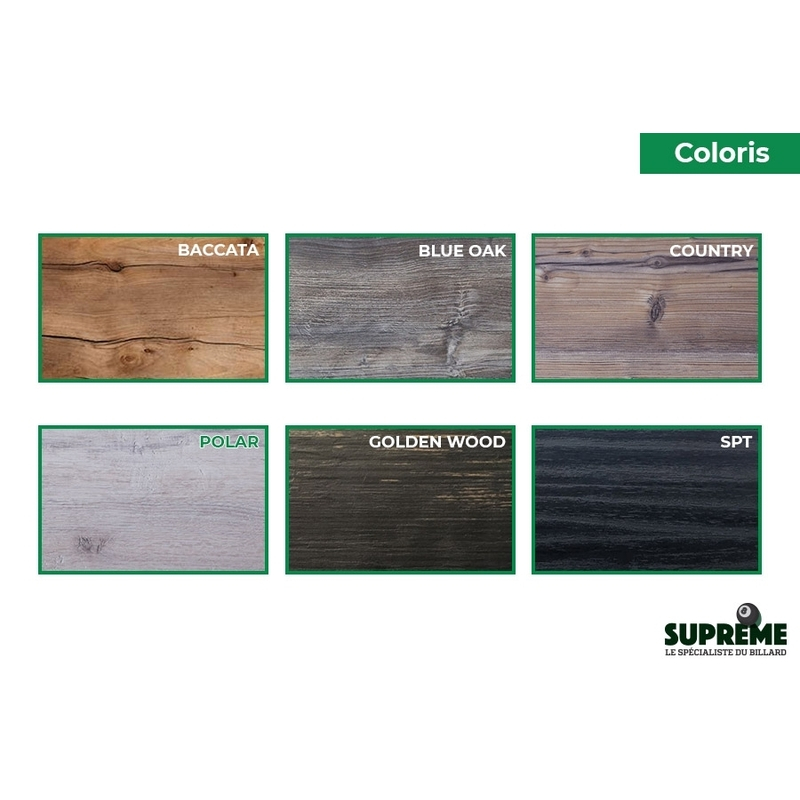 Les coins et les pieds de la table allient esthétique et robustesse. La teinte Blue Oak distinctive apporte une touche contemporaine et chaleureuse à votre espace de jeu. Les pieds massifs et stables garantissent un équilibre optimal, même lors de parties prolongées ou intenses, tandis que les poches intégrées capturent les billes en douceur.